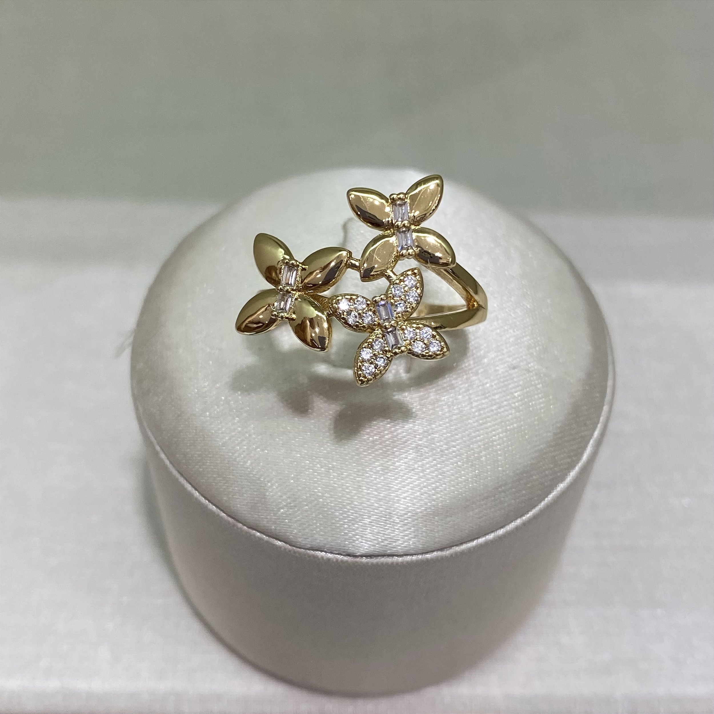Anel 3 Borboletas Semijoia Ouro