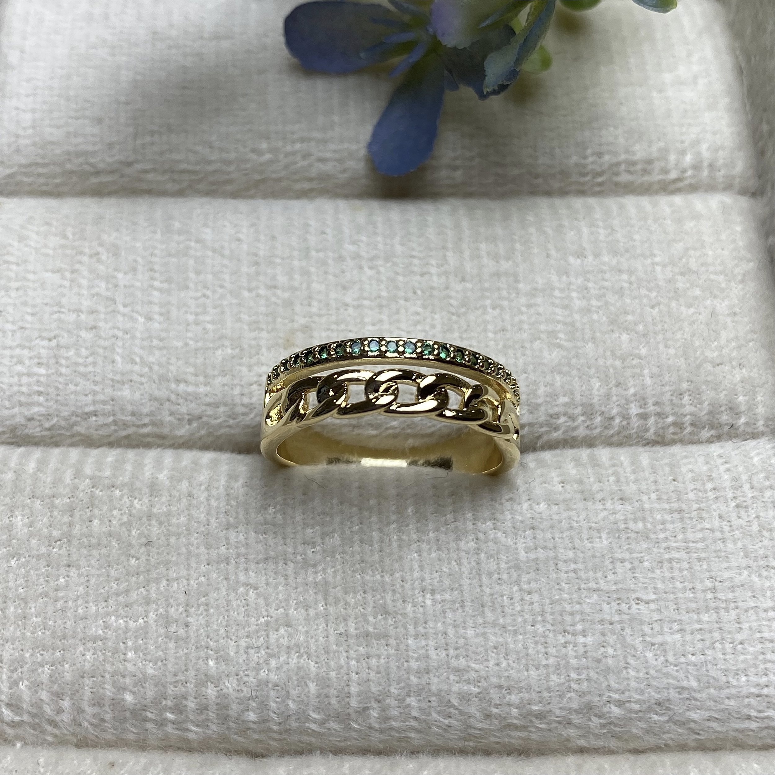 Anel Aparador com Corrente Esmeralda Semijoia Ouro 18K