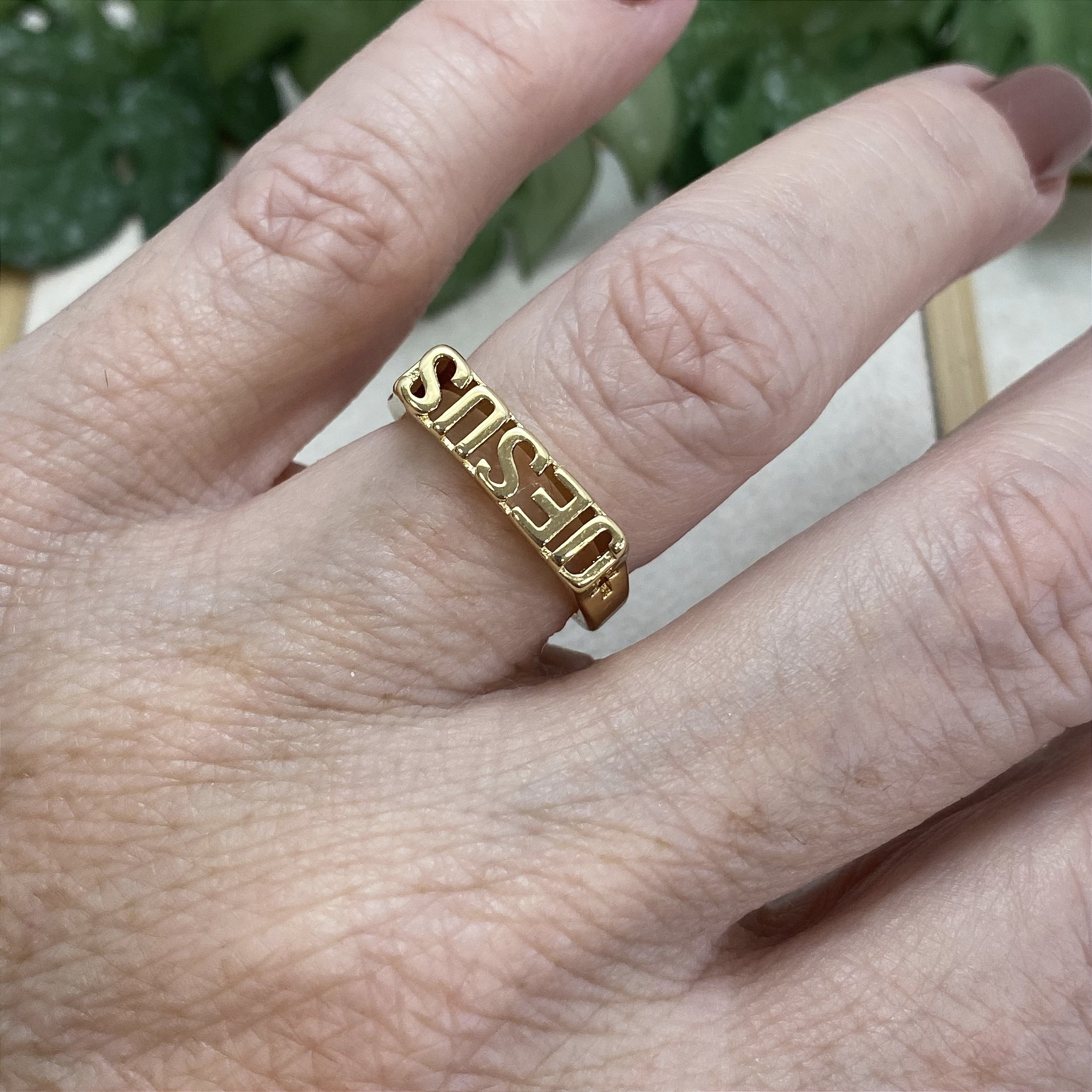 Anel Jesus Semijoia Ouro