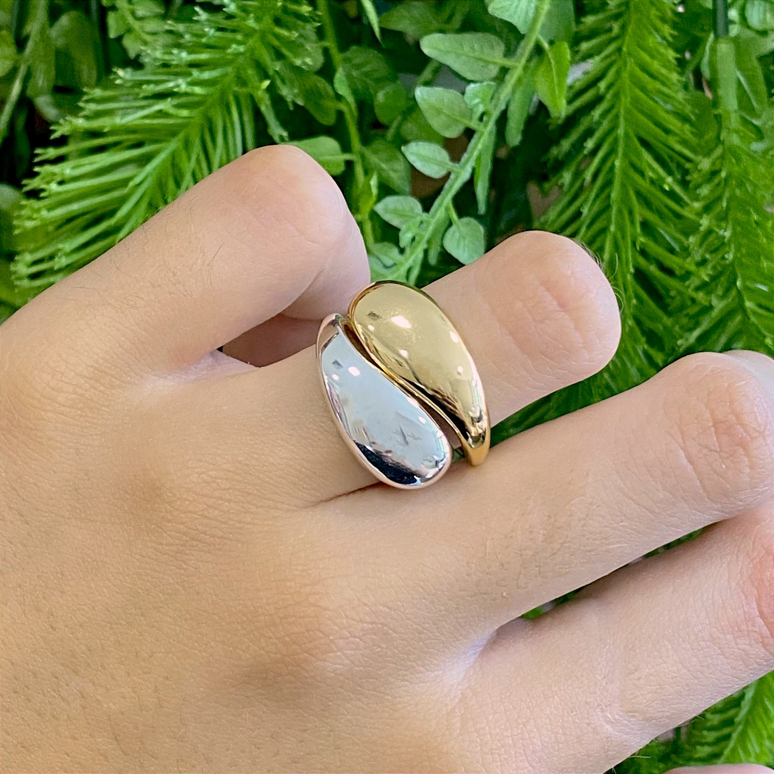 Estes anéis juntos mesclam o prateado e dourado, trazendo uma proposta