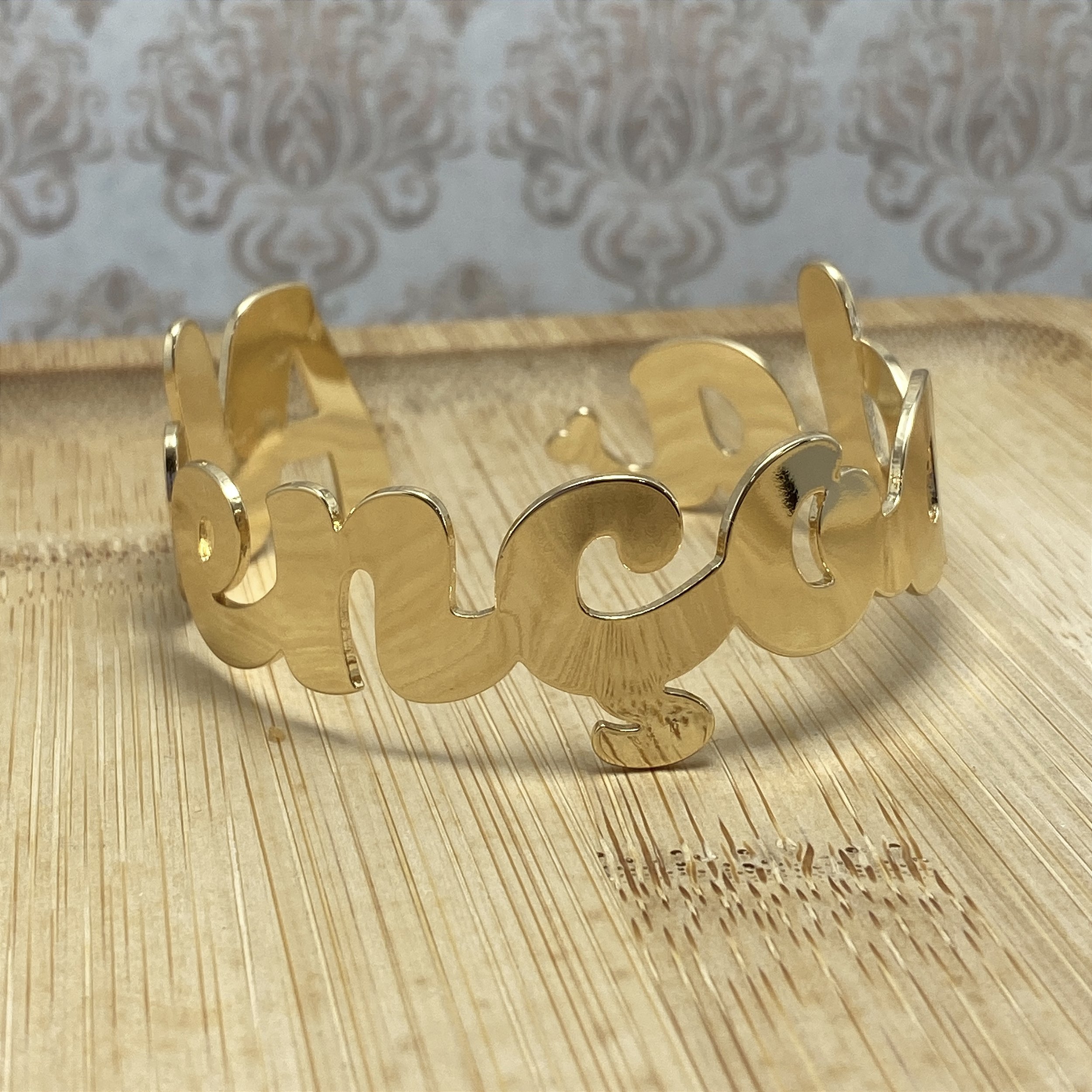 Bracelete banhado a Ouro 18k, escrito com a palavra Abençoada