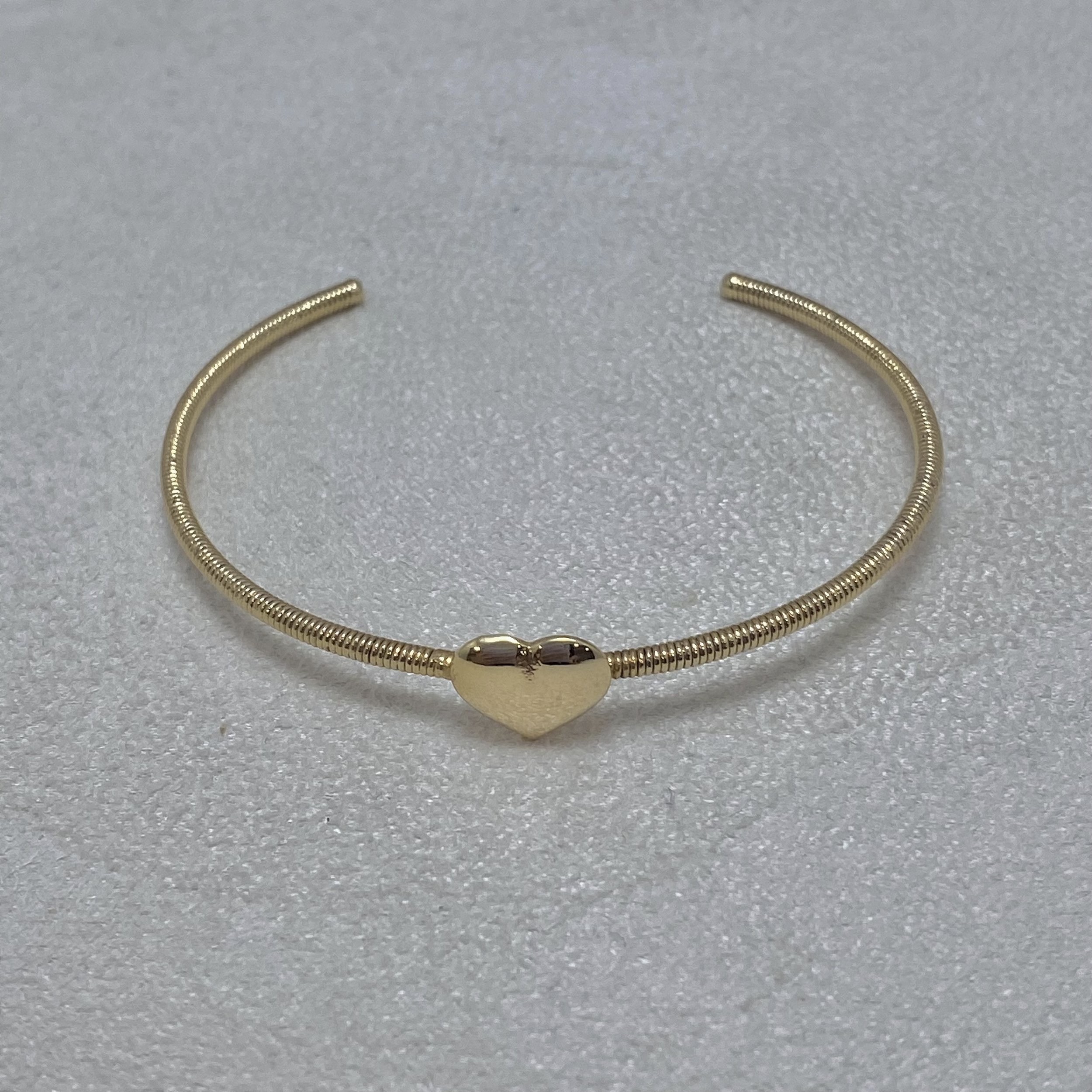 Bracelete Italiano Coração Abaulado Semijoia Ouro
