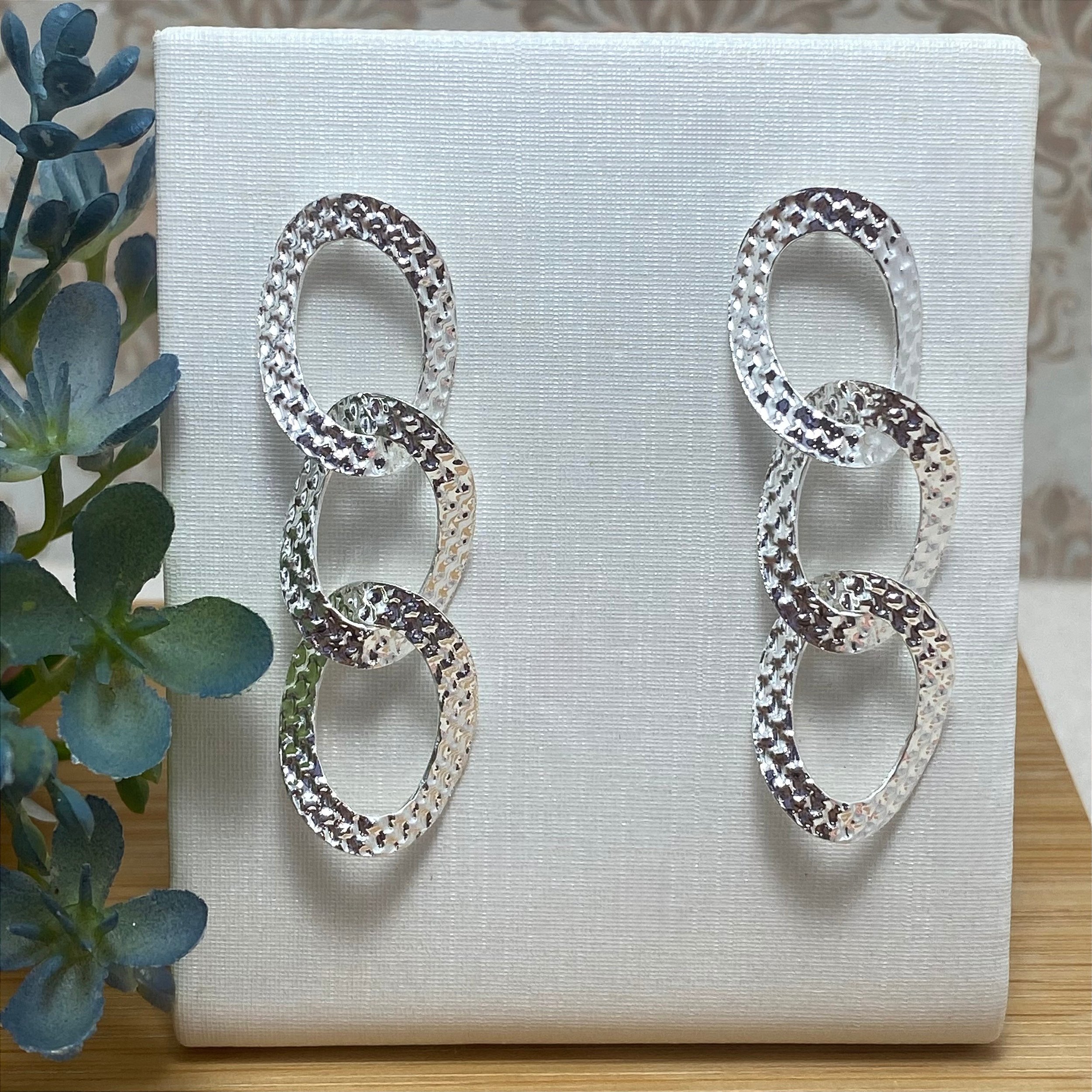 Brinco 3 Elos Martelados Semijoia Prata