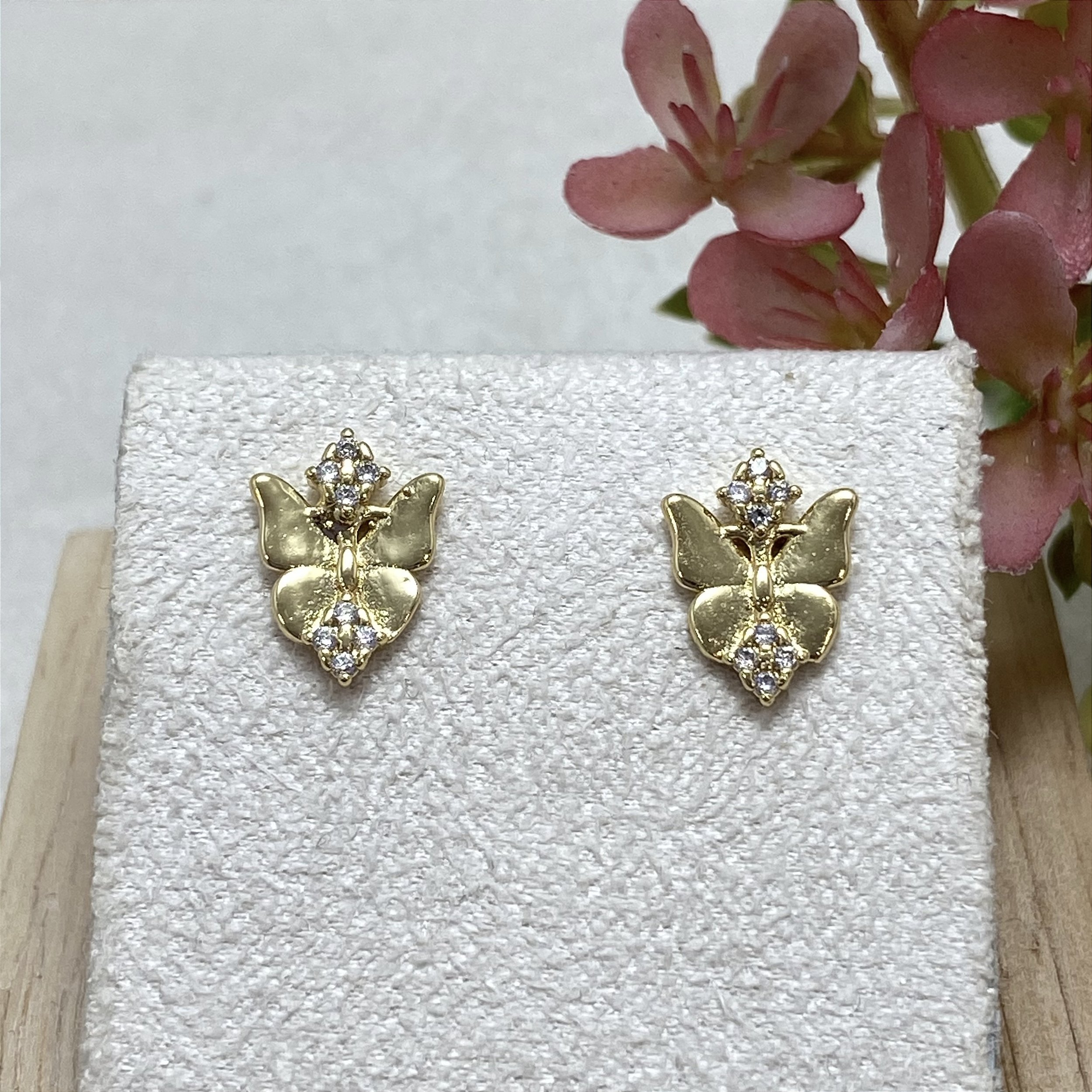 Brinco banhado a Ouro 18k, em forma de borboleta com zircônias.