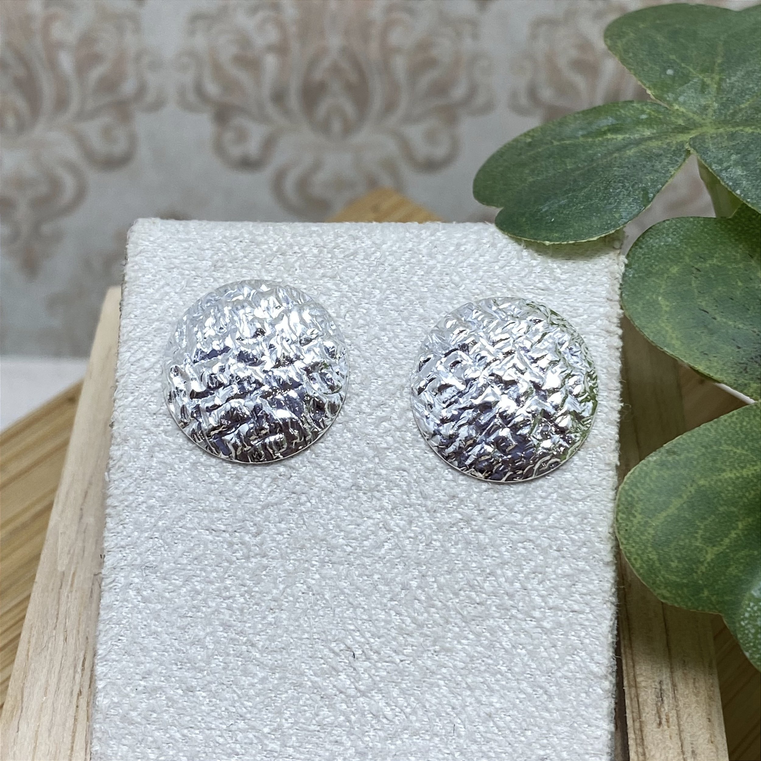 Brinco banhado a Prata 925, modelo Botão Martelado.