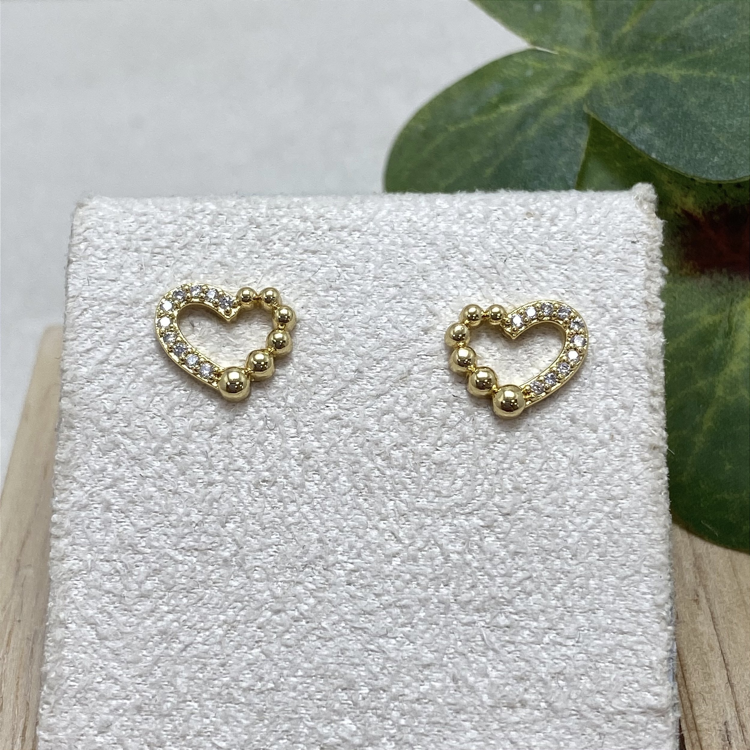 Brinco banhado a Ouro 18k, em forma de coração, com zircônias.