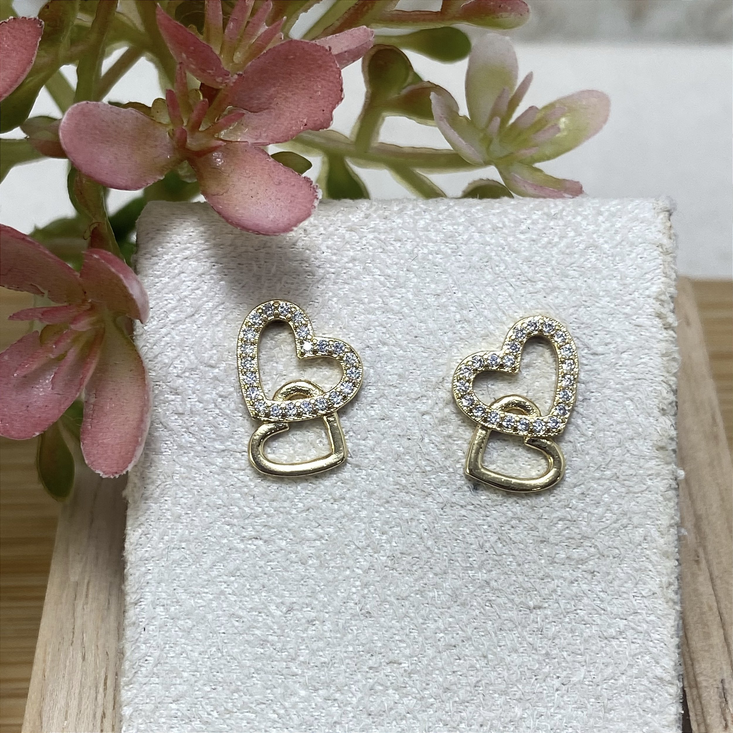 Brinco Duplo Coração Semijoia Ouro