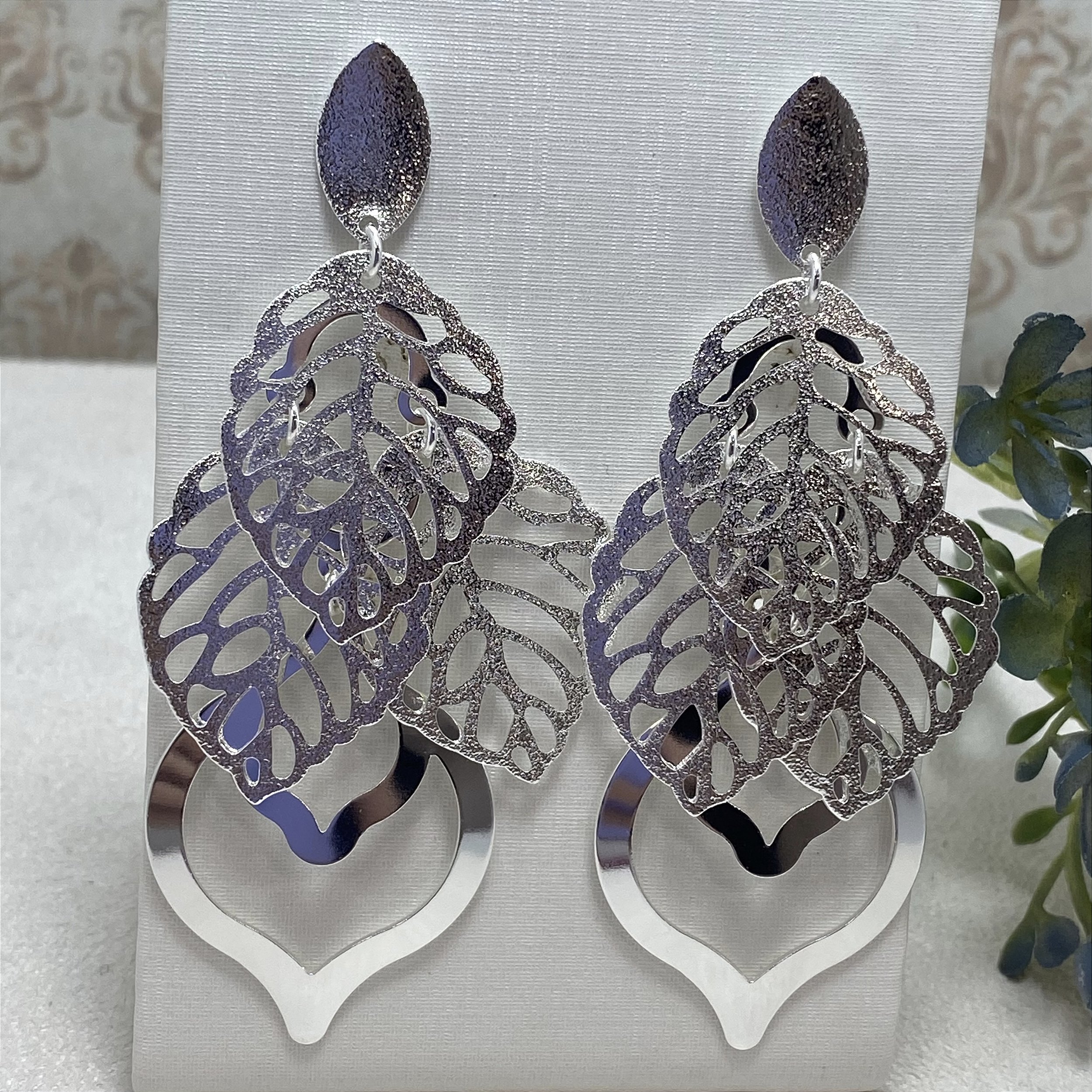 Brinco Maxi Folhas Semijoia Prata