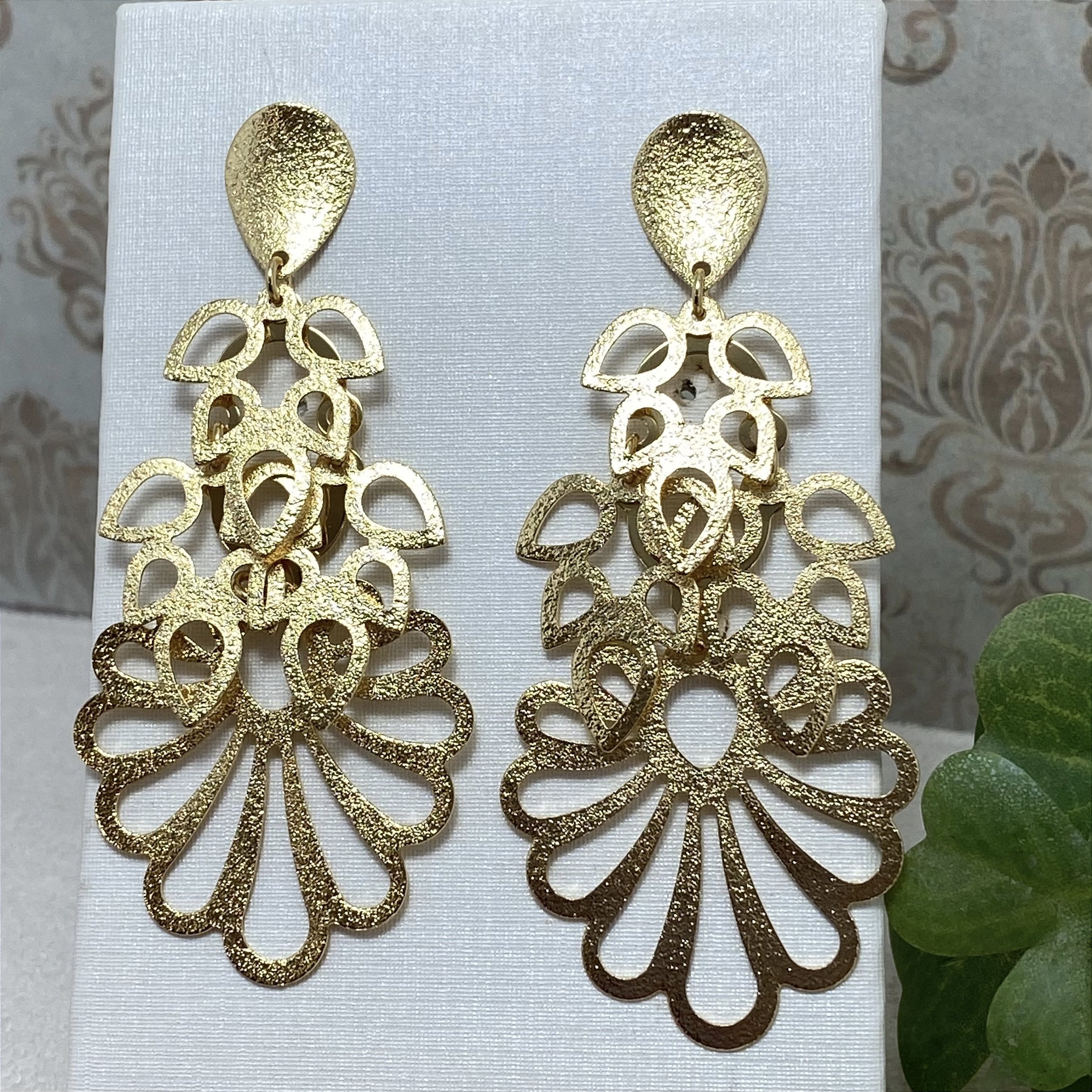 Brinco Maxi Leques Semijoia Ouro