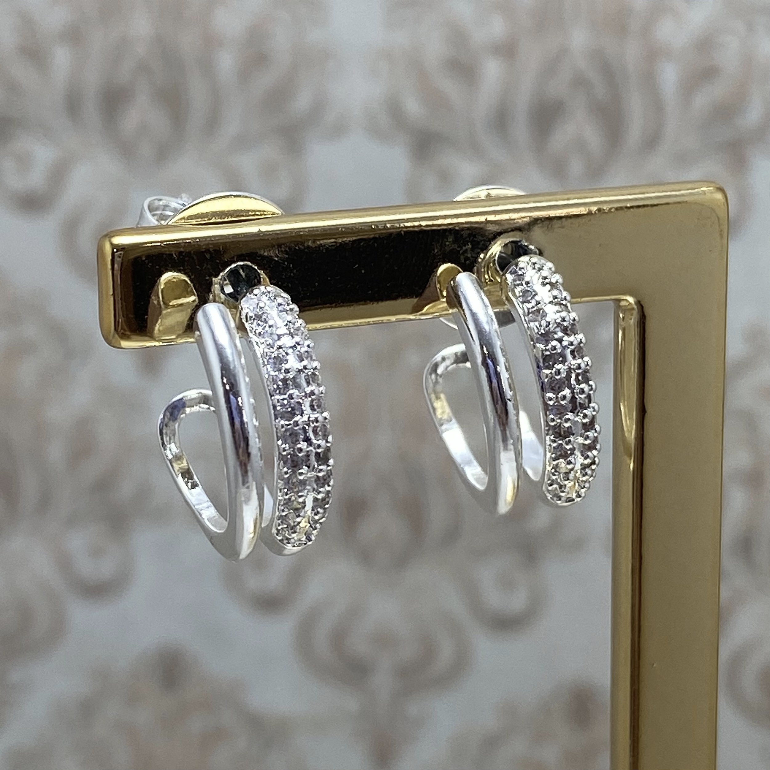 Brinco Meia Argolinha Dupla Semijoia Prata