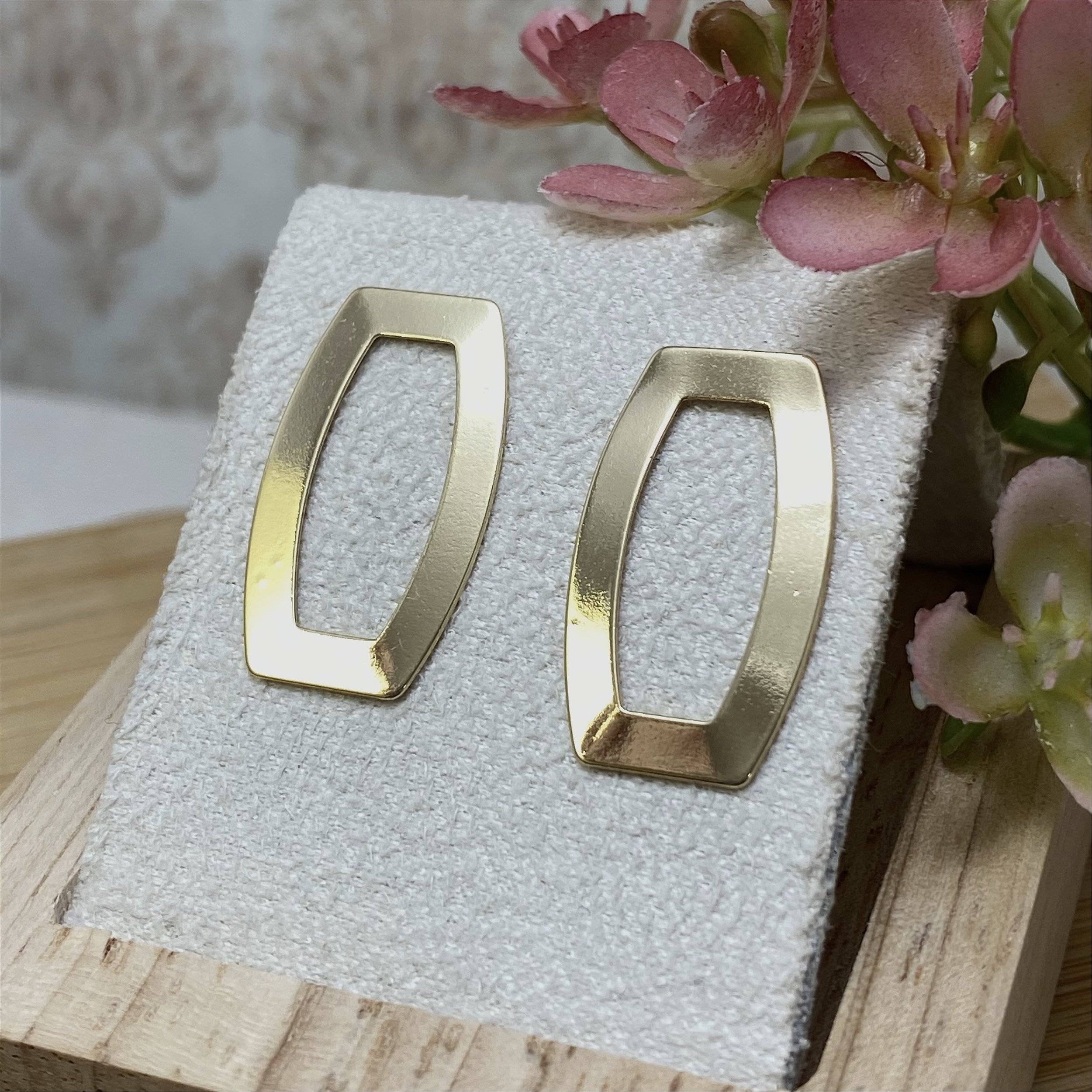 Brinco retângulo vazado banhado a Ouro 18k.