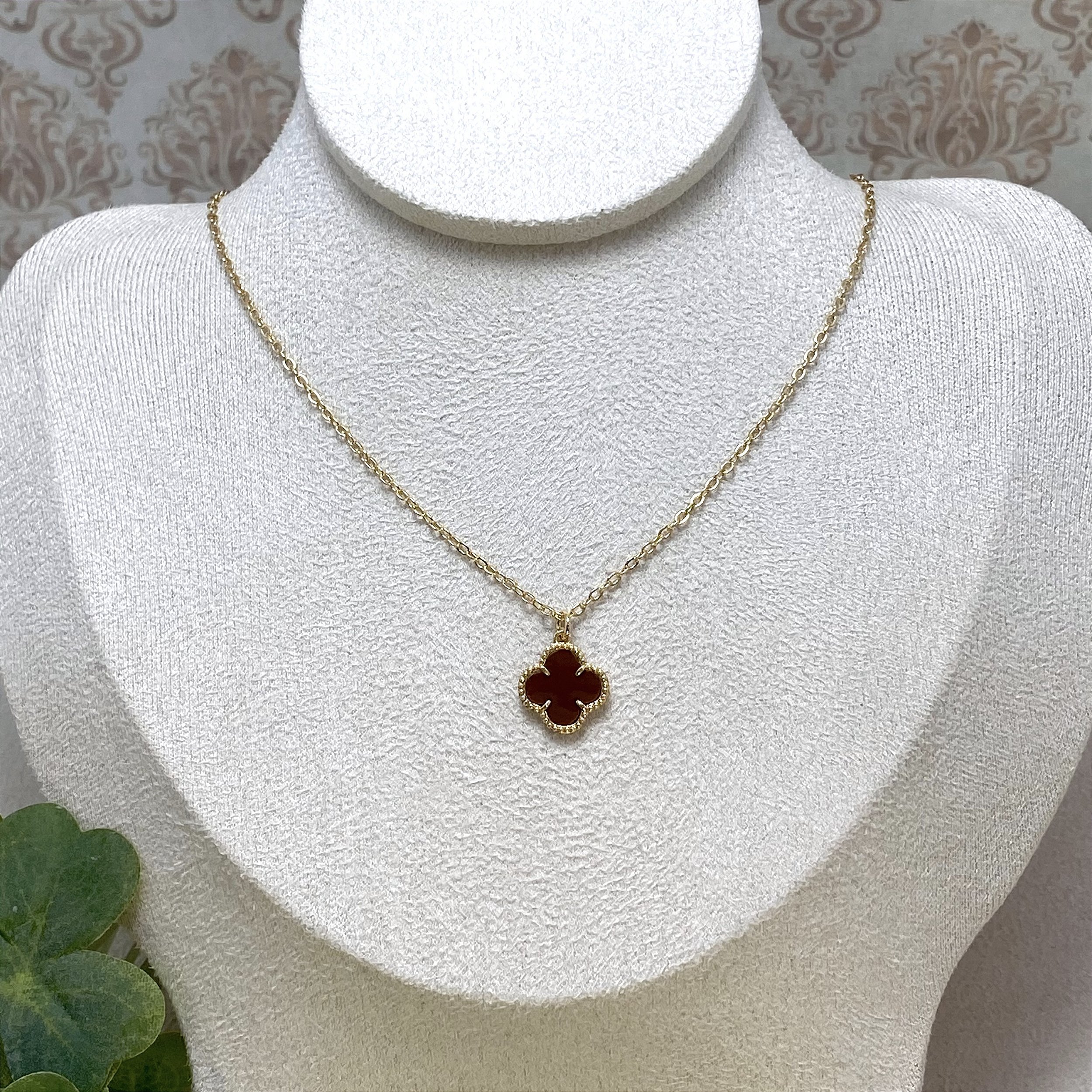 Colar de elinhos com 1 Trevo Marrom, banhado a Ouro 18K.