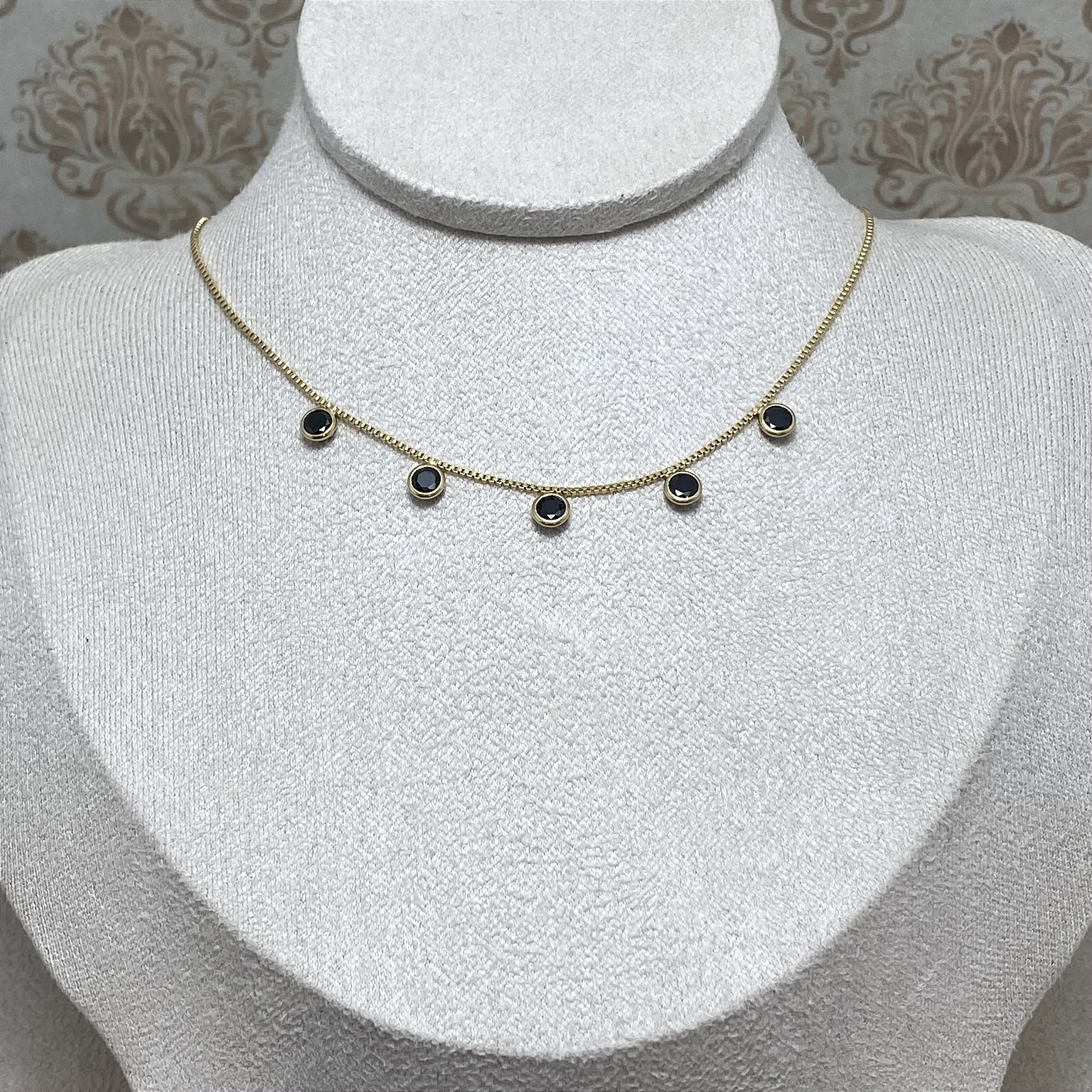 Colar banhado a Ouro 18k, de pontinhos pretos.