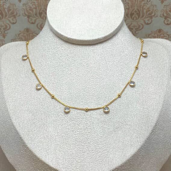 Colar 6 Zircônias com Bolinhas Semijoia Ouro
