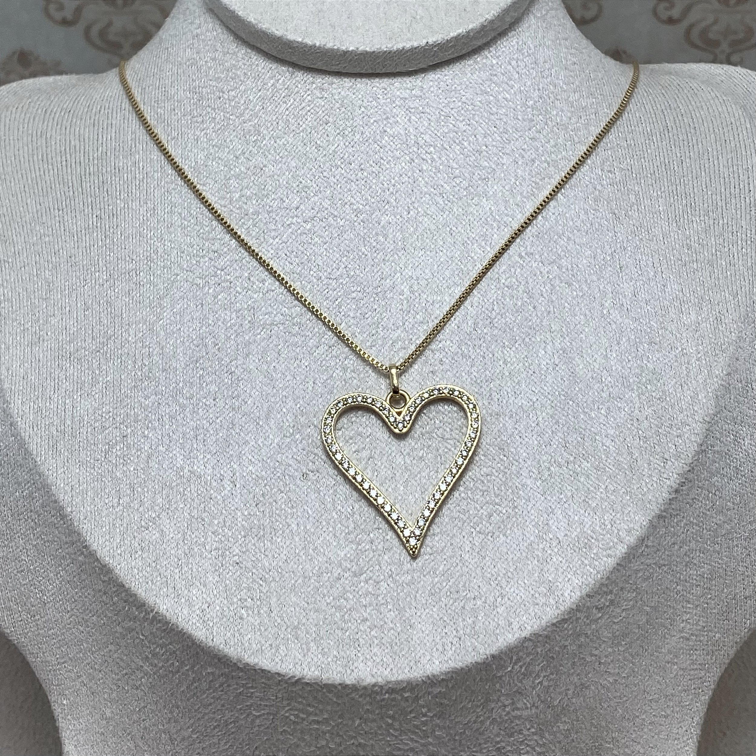 Colar Coração Vazado Grande Semijoia Ouro