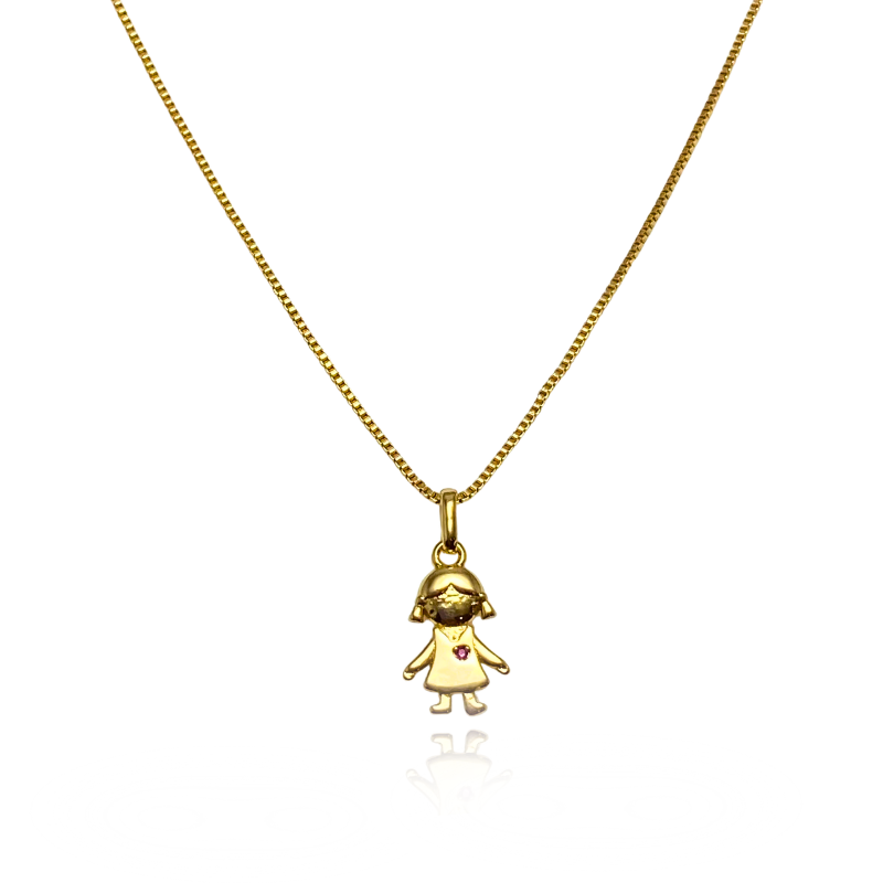 Colar Menina Ponto Vermelho Semijoia Ouro