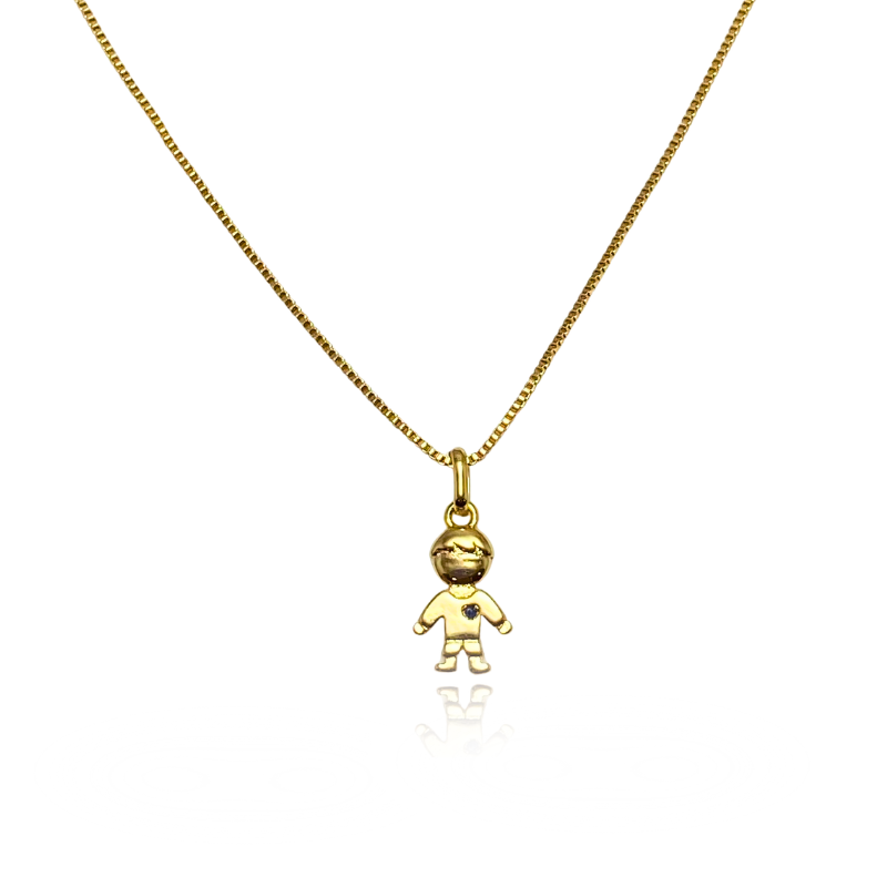 Colar Menino Ponto Azul Semijoia Ouro