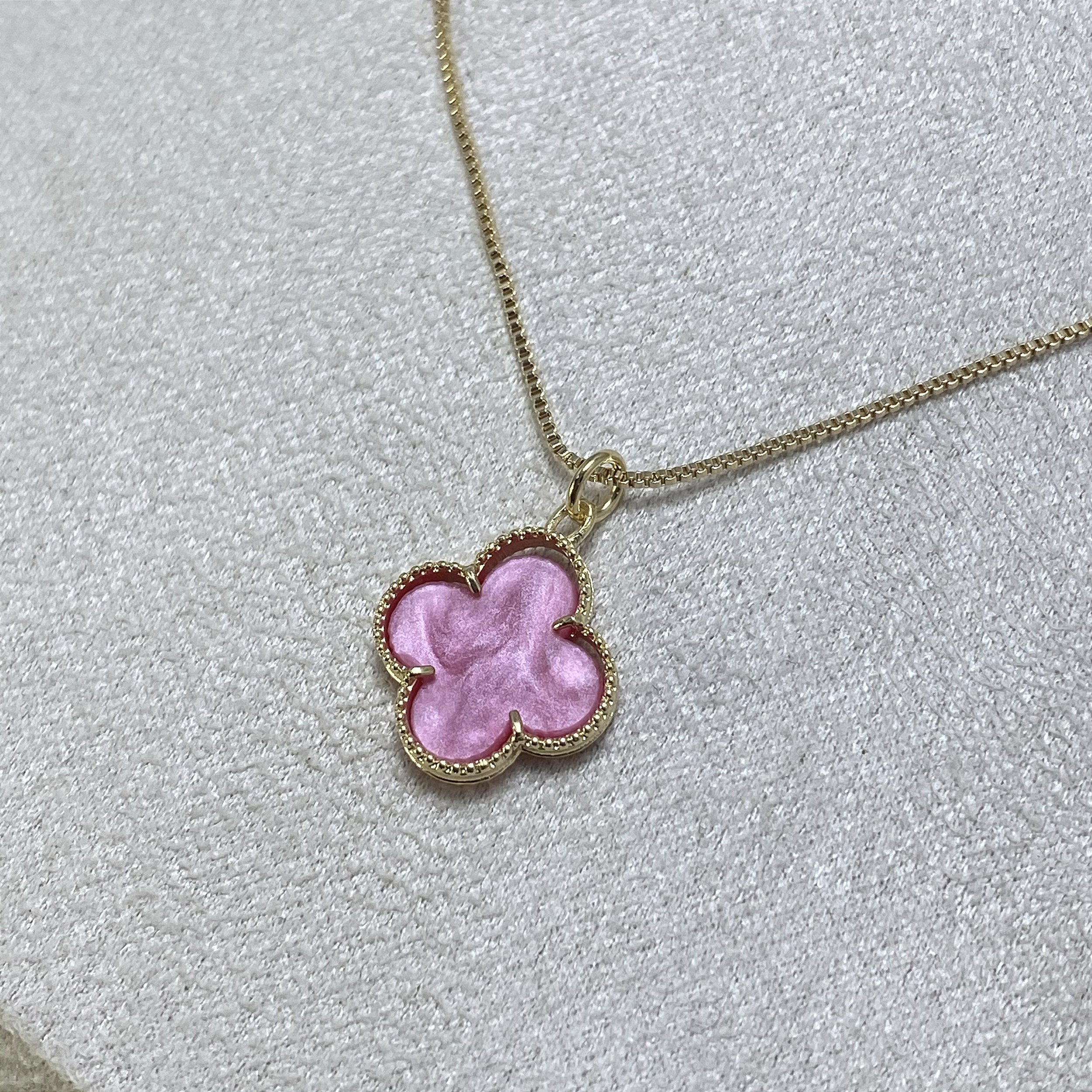 Colar Trevo Pink Semijoia Ouro