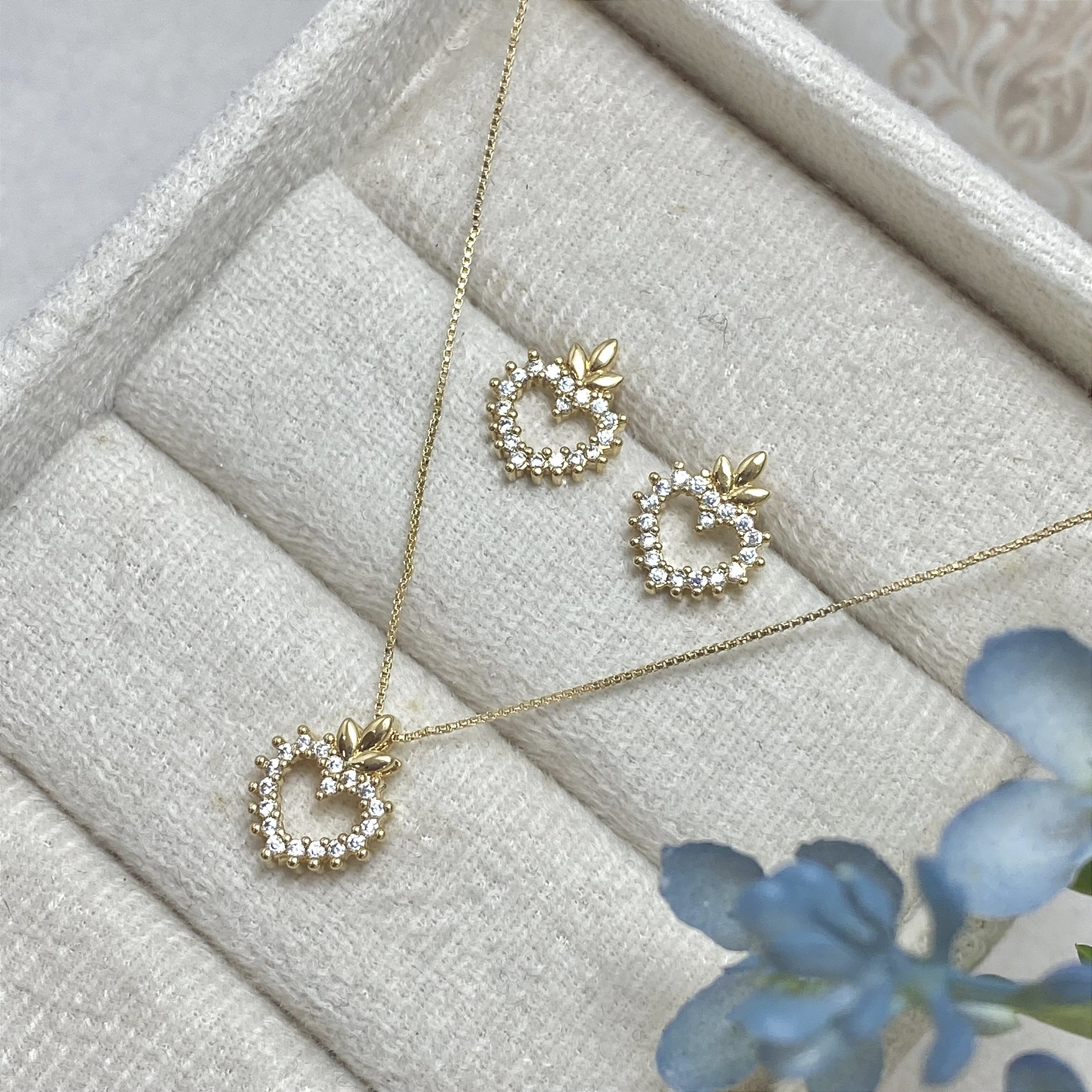 Conjunto Coração Elegante Semijoia Ouro