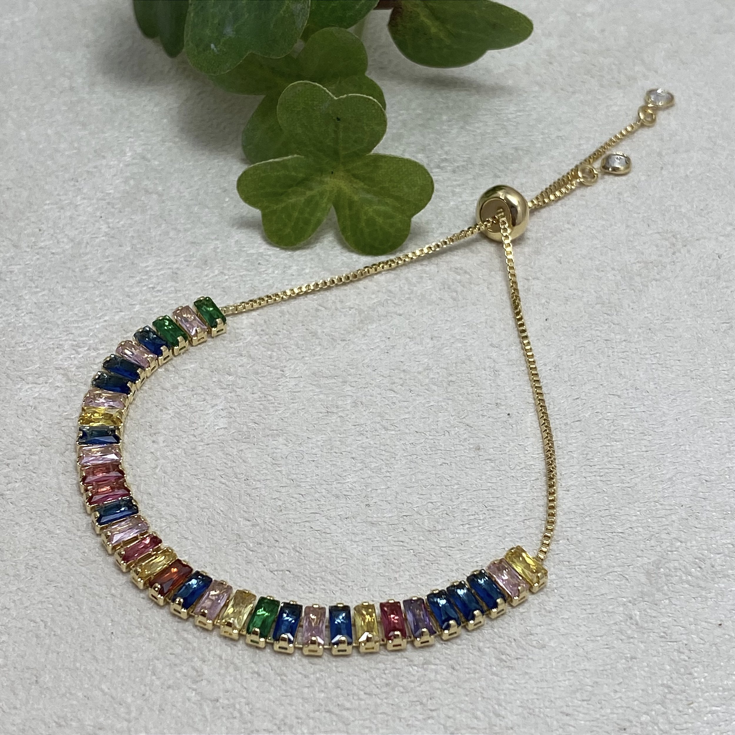 Pulseira Ajustável banhada Ouro 18k, com cristais navete coloridos.