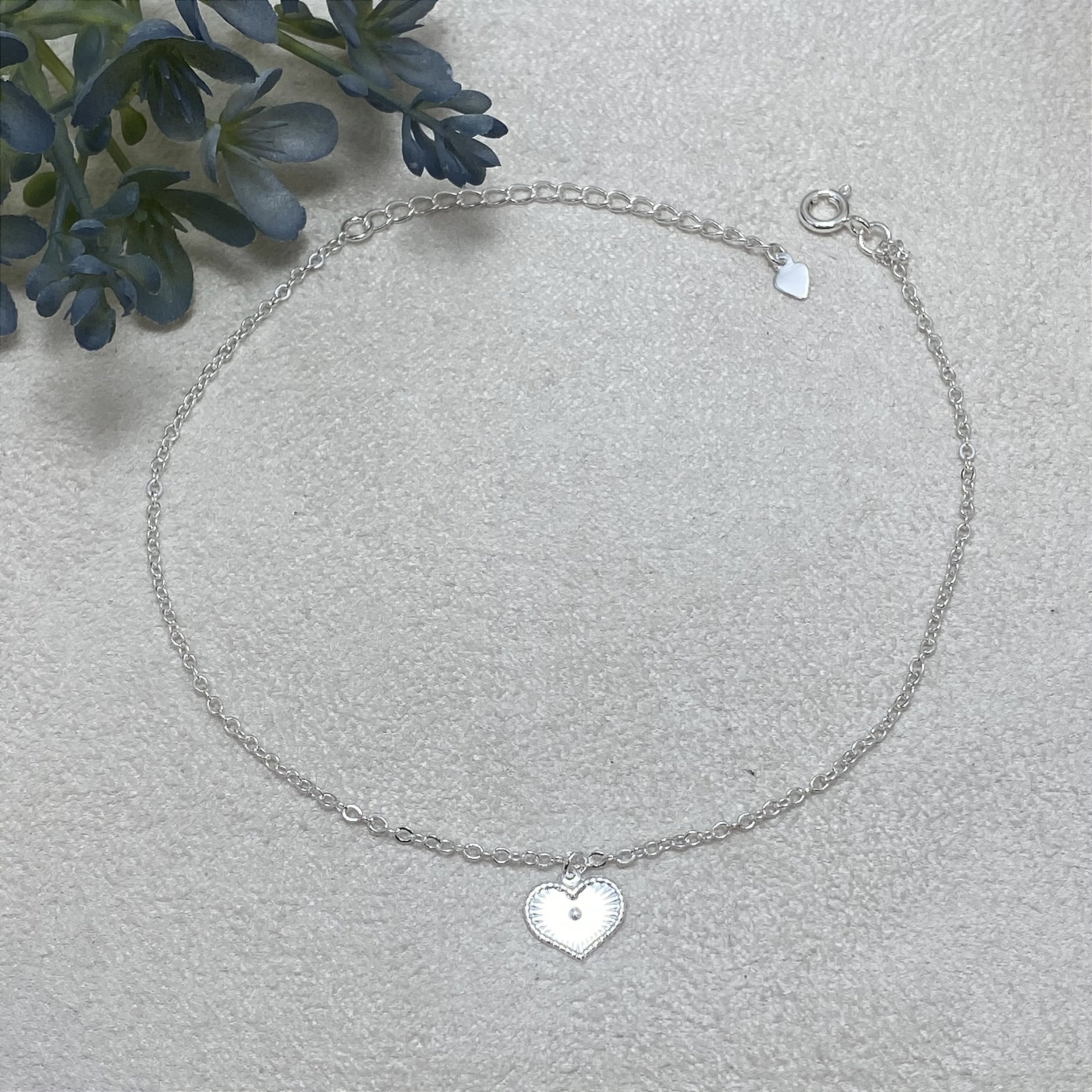 Tornozeleira Coração Frisado Semijoia Prata