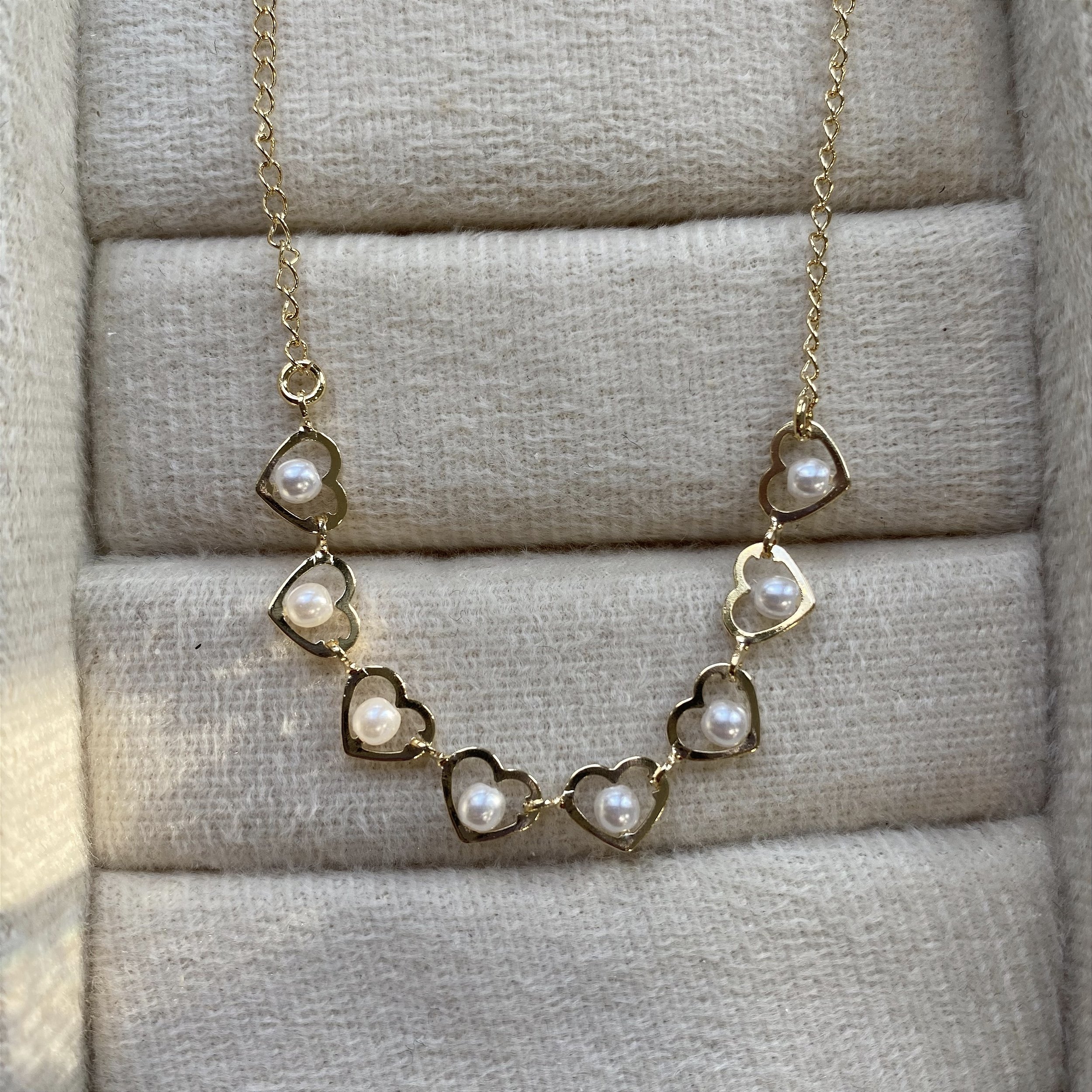 Tornozeleira Corações com Pérola Semijoia Ouro
