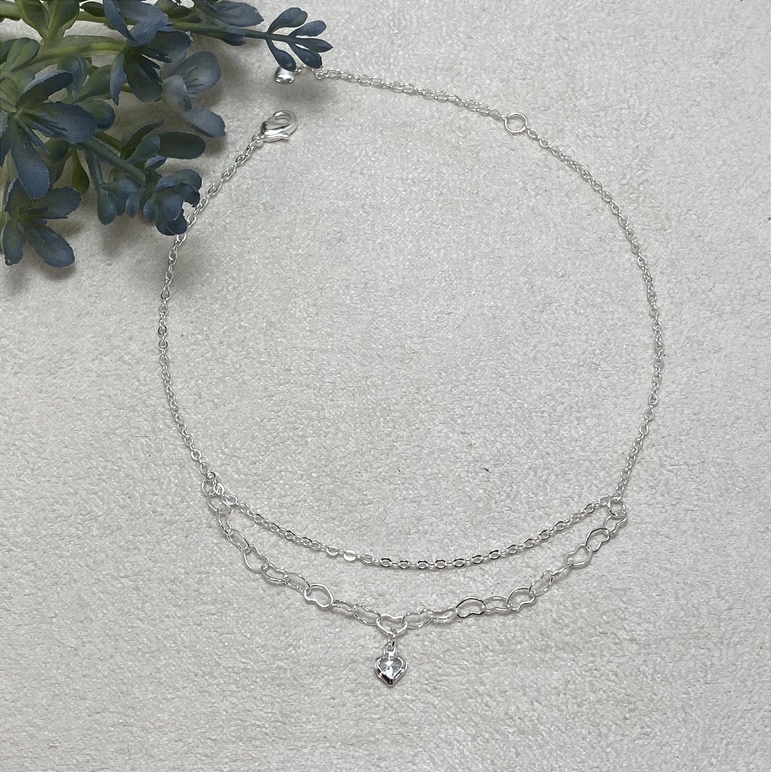 Tornozeleira Dupla Coração Semijoia Prata